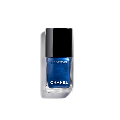 鮮やかなアズール ブルーの目もと、多彩に輝く肌、つやめく唇、 メタリックなインディゴ ブルーのネイル。 大胆なメークアップ ルックで、自分らしく楽しむデニム。