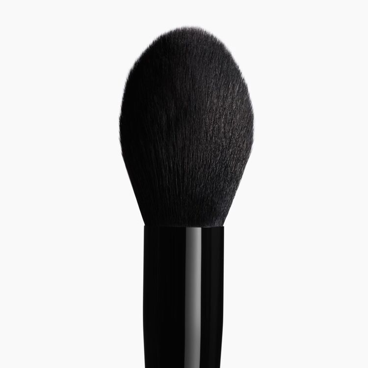 広い範囲にフェイス パウダーをのせることができるパウダー ブラシ。顔のカーブに沿う毛先が、均一な仕上がりを叶えます。
