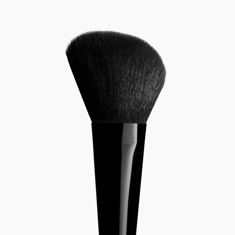 シェーディング カラーやチークカラーをのせるのに最適なパウダー ブラシ。斜めにカットされた毛先が顔の輪郭にしっかりと沿い、自然な陰影をもたらします。
