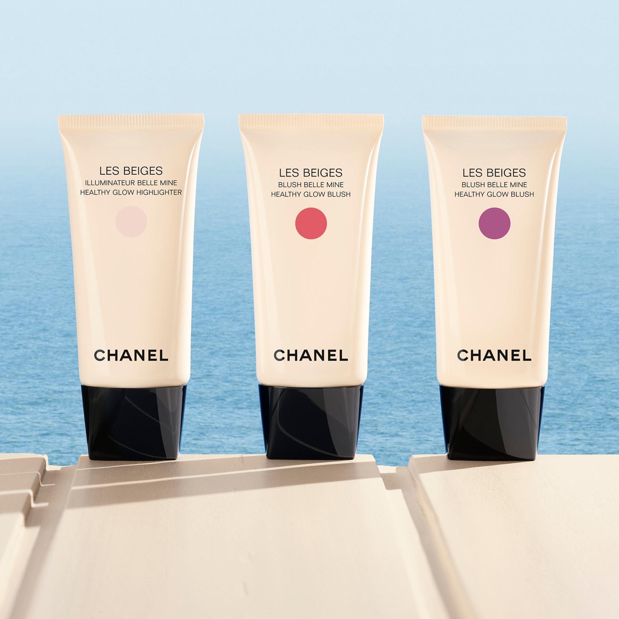 シャネル メークアップ クリエイティブ ストゥディオが手がけたリクィッド チークカラー、レ ベージュ ブラッシュ ベル ミン。みずみずしいフォーミュラが頬にうるおいをもたらし、海辺で一日過ごしたかのような明るい肌を演出します。