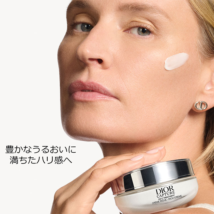 肌のうるおいをサポートするリッチ クリーム。新「ディオール カプチュール クレーム リッシュ」は、カプチュール共通成分「OX-C トリートメント (*1)」に加え、独自の「オレオ セラミド コンプレックス (*2) 」を配合。クリームが固体から液体に変わる融点を体温より高く設定することで、コクがありながらも肌にすっと馴染む心地よさを実現。べたつかず包み込むような感触で肌に水分を閉じ込め、うるおいを健やかにサポート。息づくような、豊かなうるおいに満ちたハリ肌へ。幹細胞研究(*3)25年のディオールから。(*1) ノウゼンハレン花/葉/茎エキス(整肌成分)(*2) セラミドNP、スクワラン(保湿成分)(*3) 化粧品に応用するための幹細胞研究