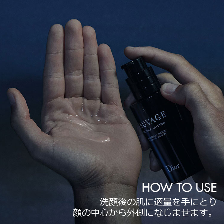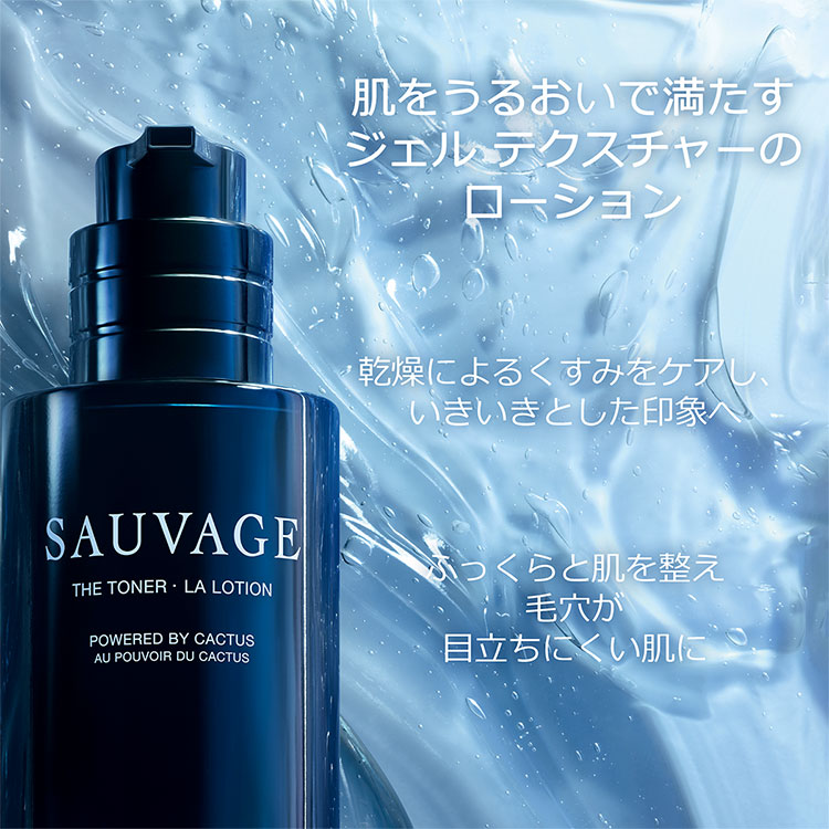 過酷な砂漠でも成長する、生命力を備えたサボテンのパワーに着目し、ディオール ガーデンで栽培されるサボテンから抽出した保湿効果のあるサボテン花エキス(*2)とサボテン茎エキス(*3)を配合。男性の肌のために開発されたこのローションは、ソヴァージュのフレッシュでウッディな香りで包みながら、肌に潤いを与え、乾燥によるくすみや毛穴を目立たなくします。爽快感あるテクスチャーが明るくいきいきとした印象へと整えます。