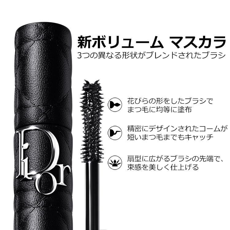まつ毛1本1本にボリュームを与え、かつてないインパクト(*)を叶える「マスカラ ディオールショウ オーバーボリューム」から、鮮やかなエレクトリック ブルー、深みのあるクール ブラウン、エレガントなプラム、遊び心あふれるピンクの4シェードが登場。ヴィンテージ タッチのアイメイクからエフォートレスで洗練された目元まで、思いのままに美しく彩ります。独自フォーミュラと新8シェイプ ブラシとの組み合わせで、まつ毛を逃さずキャッチし1本1本を際立たせながら、瞬時にボリュームを実現。長時間、美しいボリュームとカーブをキープし、圧倒的な存在感を放つ印象的な目もとへ。ケア成分配合で、使うたびにハリのあるまつ毛に整えるトリートメント効果も。仕上がり:ボリュームとカールを実現メイク持ち:長時間続く仕上がり。色移りやにじみにくいノントランスファー処方。まつ毛ケア:まつ毛を保湿するD-パンテノール、アビシニアン オイル、ブルー フラワー エキス配合。(*)ブランド内において