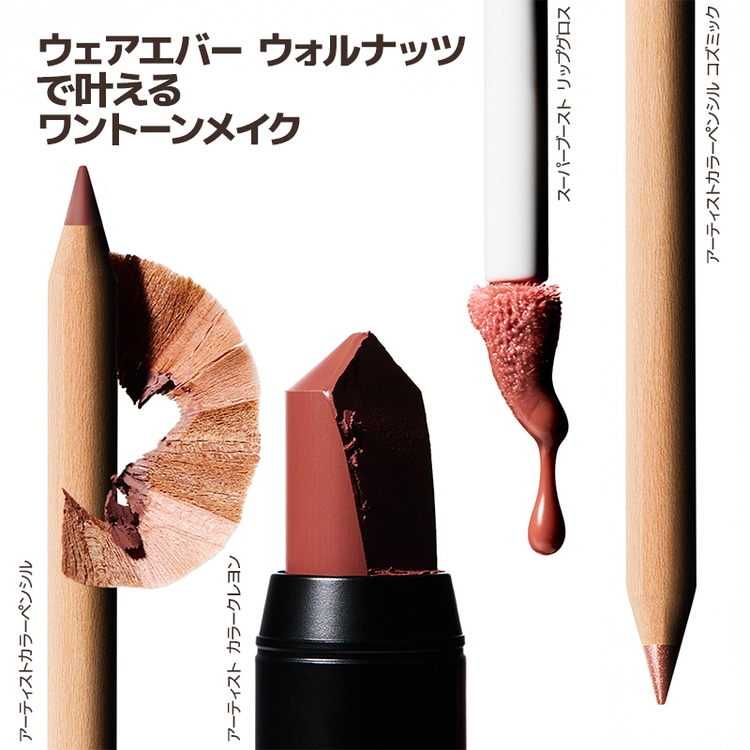 色鉛筆から着想を得たアーティストカラーペンシルは、なめらかに滑る精巧なペン先で、リップ、アイ、フェイスなど、さまざまなポイントメイクに使える万能ペンシル。