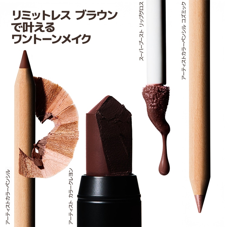 色鉛筆から着想を得たアーティストカラーペンシルは、なめらかに滑る精巧なペン先で、リップ、アイ、フェイスなど、さまざまなポイントメイクに使える万能ペンシル。