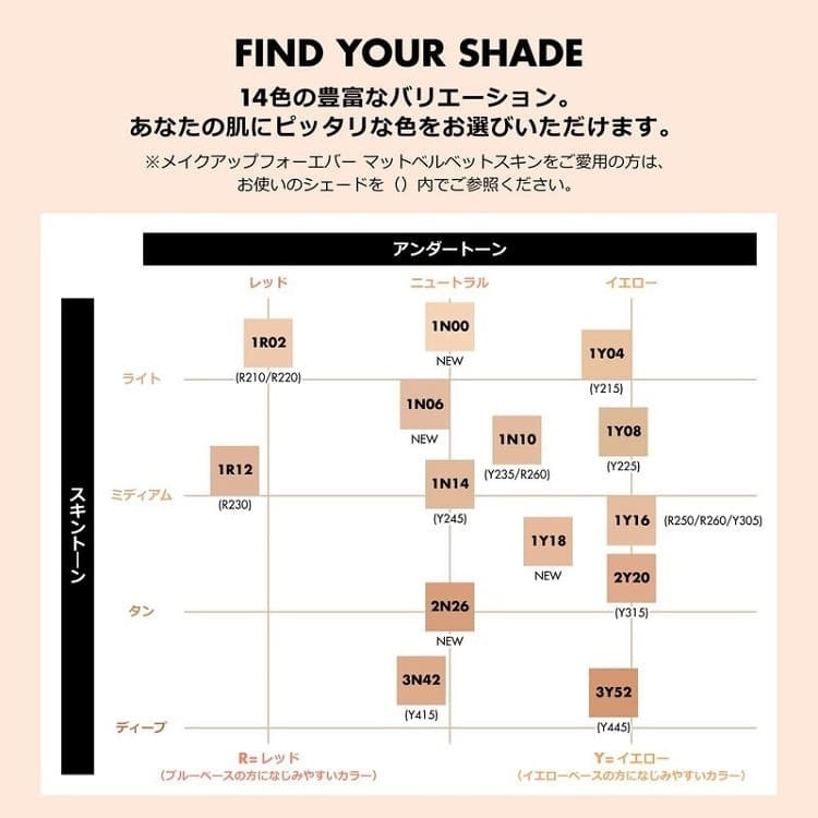 血管が緑に近い色の場合、色番号に”Y”が入ったシェードがおすすめです。