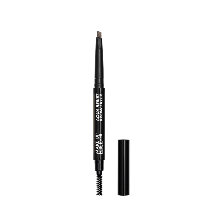 アクアレジストブロウフィラーは、片方が極細のペンシル、もう片方がブラシになっており、ブラッシングして製品をなじませることで、自然な仕上がりを得ることができます。ペンシルの面取り部分は平らなので、スカルプティングに最適で、簡単に隙間を埋めることができます。