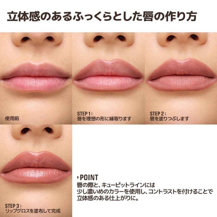 リップライナーやアイライナーとしてだけではなく、リップカラーやアイカラーとしても使えます。さらにチークカラーやシェーディングなど、1本でマルチに活躍します。