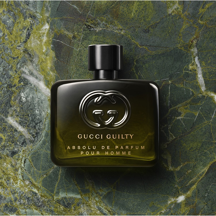 グッチ ギルティ アプソリュ ド パルファムのボトルデザインは、香りに宿る特別な価値を映し出しています。ラッカー仕上げのグラデーションガラスは、上部は不透明で、ボトムにいくにつれて透明になり、内側にある輝く香りをほのかにのぞかせます。ボトルは、グッチを象徴する2つのカラー ――For himのグリーン、For herのレッド――で彩られ、中央にはエンボス加工のインターロッキングGのロゴがあしらわれています。ブラックキャップとゴールドのレタリングで仕上げられたボトルは、2つの香りの間に洗練されたバランス感を表現しています。いずれも、他のコレクションにはない60mLサイズで展開されます。