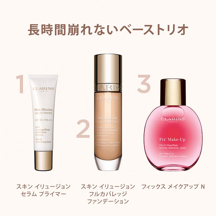 ファンデーションの毛穴落ちや、メイクの色移り、色褪せを防ぎ、メイクの仕上がりの美しさをキープします。