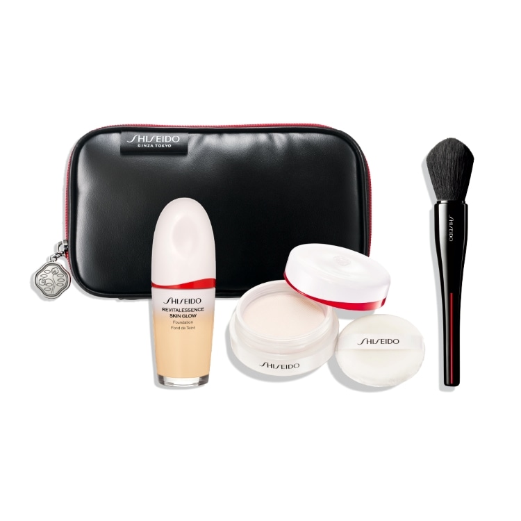 SHISEIDO 人気のエッセンス スキングロウ ファンデーションと、同シリーズのパウダー、MARU FUDE マルチ フェイスブラシをご購入の方に、SHISEIDO のブラシが収納できる「SHISEIDO 特製ブラシポーチ」を進呈。