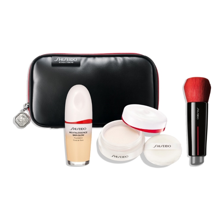 SHISEIDO 人気のエッセンス スキングロウ ファンデーションと、同シリーズのパウダー、DAIYA FUDE フェイス デュオをご購入の方に、SHISEIDO のブラシが収納できる「SHISEIDO 特製ブラシポーチ」を進呈。