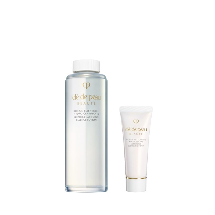 輝き続ける肌のために。みずみずしいうるおいで、肌表面を明るくクリアに整えて清らかな肌へと導く化粧水と、しっとりとした肌に洗い上げる洗顔の特製サイズのキット