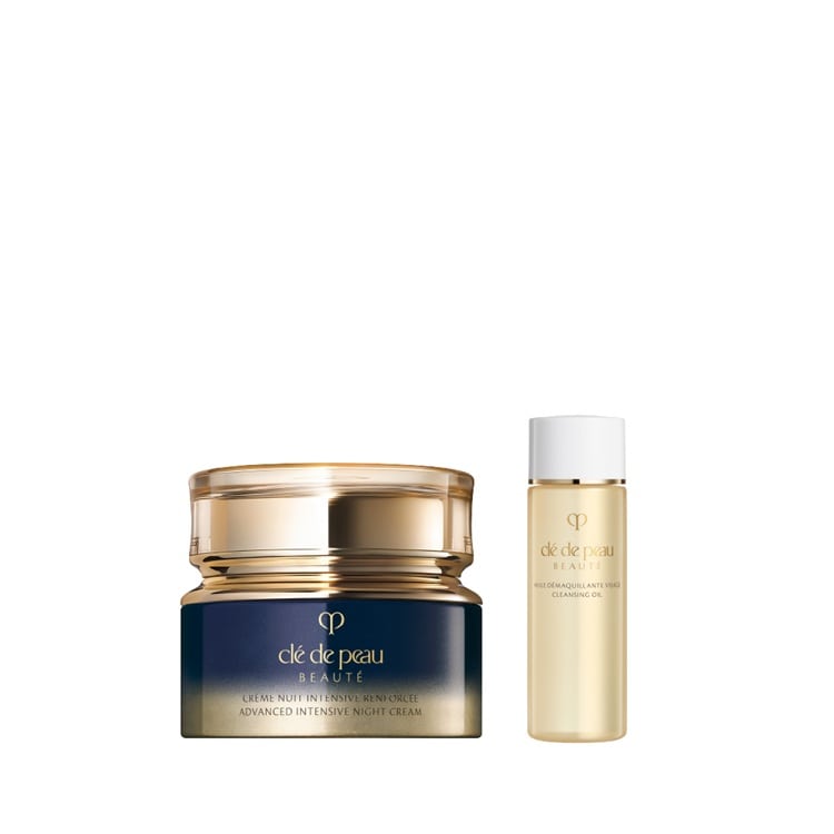輝き続ける肌のために。日中に乾燥などの環境ダメージを受けた肌を優しくケアする夜用のクリームと、うるおいに満ちた柔らかな肌へ導くクレンジングオイルの特製サイズのセット。