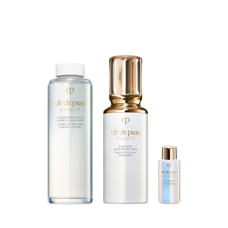 みずみずしいうるおいで、肌表面を明るくクリアに整えて清らかな肌へと導く化粧水、朝の肌に必要なうるおいが長時間続く日中用の乳液と、ル・セラムⅡの特製サイズ(7mL)がセットに。