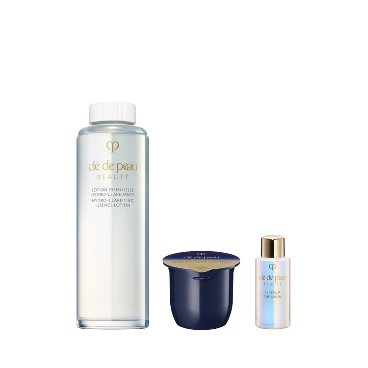 みずみずしいうるおいで、肌表面を明るくクリアに整えて清らかな肌へと導く化粧水、日中に乾燥などの環境ダメージを受けた肌を優しくケアする夜用のクリームと、ル・セラムⅡの特製サイズ(7mL)がセットに。