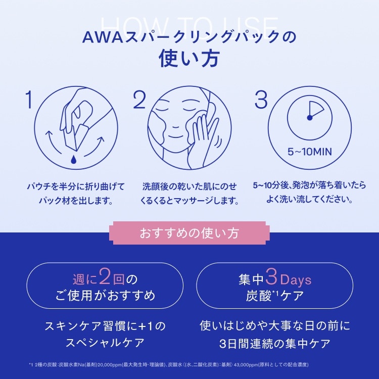 つるんと透明肌*2パックで肌管理*8。W高濃度炭酸*1配合。