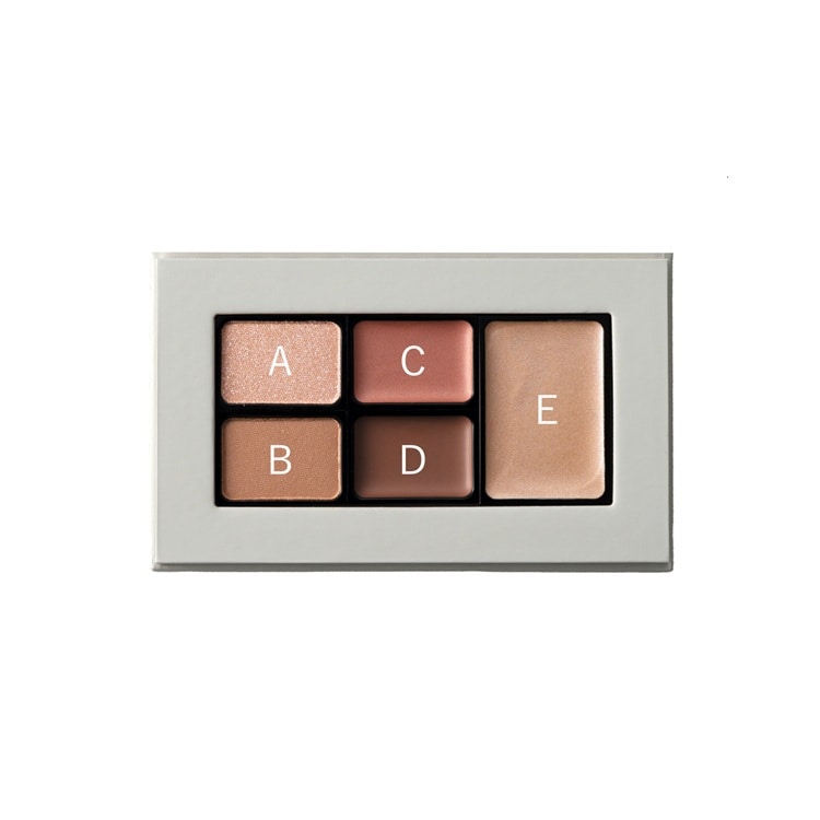 B(パウダー):多色パールがきらめくキャメルべージュ。青みにも黄みにも寄りすぎないニュートラルなトーンで、組み合わせによって印象を変えるべーシックカラー。アイ、チークに。