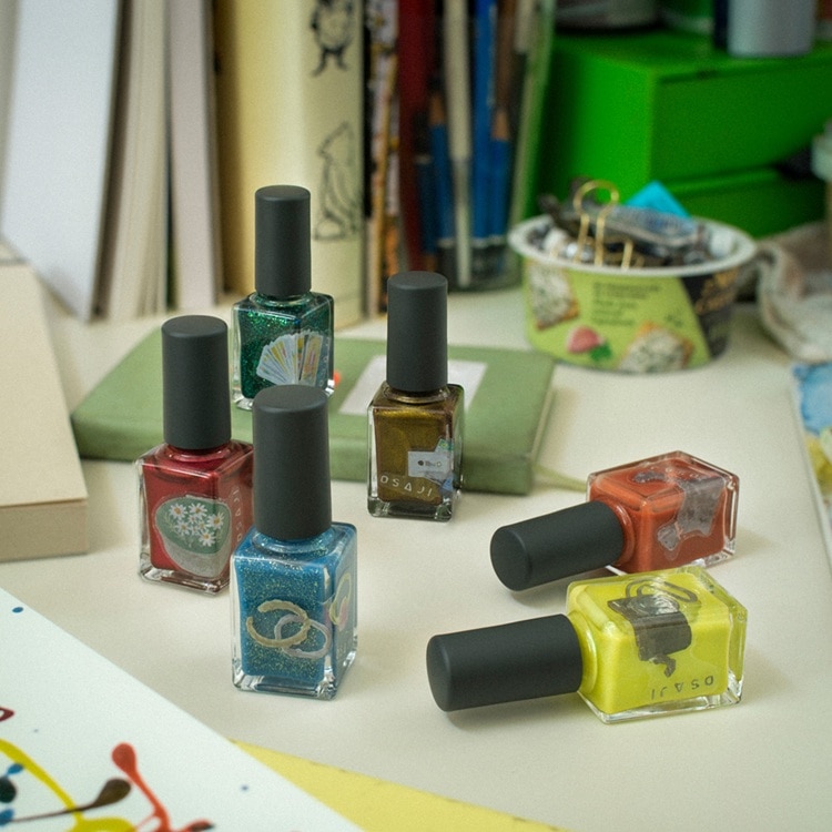 日常に潜む宝物を照らすように、指先にきらめきを配していくネイルカラーです。さりげないものからドラマティックなものまで、6色すべてに異なる輝きを閉じ込め、高揚感を呼び起こすようなカラーに仕上げました。快適に楽しめるよう、乾きやすさや圧迫感のなさにも配慮しています。また、美しい光沢感とともに、爪のうるおいを守ります。イラストレーター・よしいちひろ氏によるデザインモチーフは、誰かにとってのヒントのかけらとなったものたちをイメージしたものです。