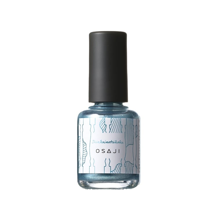 砂金を含んだ海水が陽の光に反射しているような、きらめくホリゾンブルー。透け感とくすみ感のバランスで、指先にスプラッシュのニュアンスを。