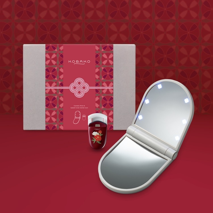 驚くほどよく見える、約10倍拡大鏡&LEDライト付等倍鏡の2面タイプのミラー「コスメティックミラー」と、持ち運びにも便利なコンパクトなビューラー「アイラッシュカーラー」の特別デザインをセットに。