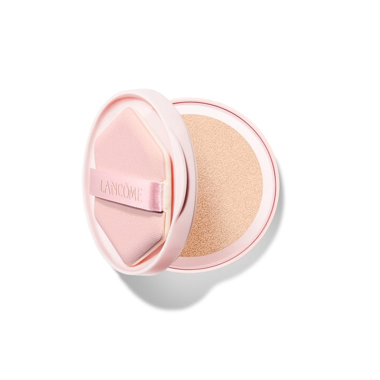 うるおいとツヤ感、長時間*続く。ランコムから84%スキンケアベースのクッションファンデーションが登場。うるおい成分**を豊富に配合し、時間が経過しても心地よい付け心地。専用パフ付き。*ランコム調べ。最長の場合において**ヒアルロン酸、スクアラン、ナイアシンアミド(保湿成分)