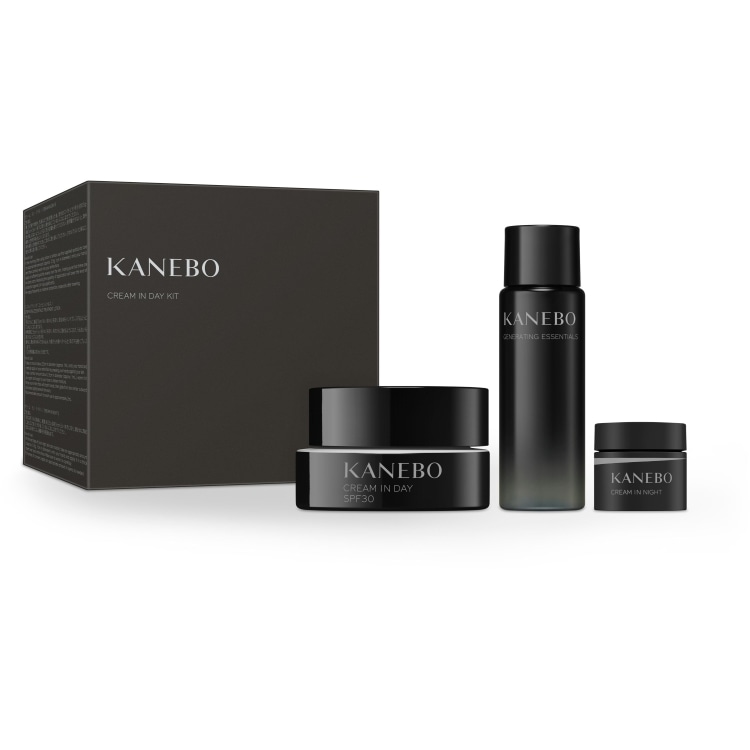 人気の朝クリーム現品に、新化粧水ジェネレイティング エッセンシャルズ ミニサイズ(30mL)と夜クリームのミニサイズ(4g)がセットされた限定キット。