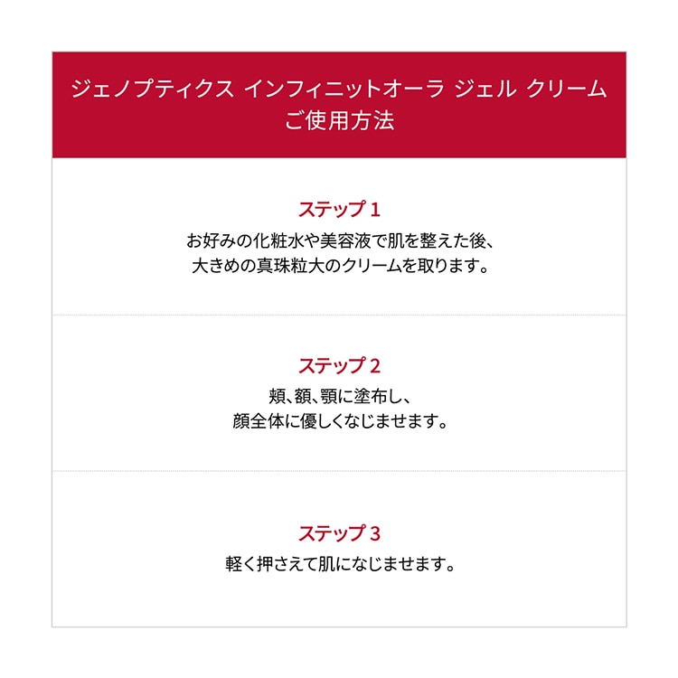 健やかな肌の適切なpH に近い弱酸性を、マイクロジェル構造により実現。軽やかな弱酸性ジェルクリームが乾燥ダメージを集中ケアし、輝く肌へと導きます。 SK-II独自のピテラ(TM)*1 に加え、ナイアシンアミド*2、蓮花エキス*3、SDL*4 を配合。柔らかいタッチでほどけて広がり、肌を包み込みます。べたつかないテクスチャーにこだわり、暑い夏や重い使用感を好まない方にもおすすめです。さわやかなホワイトフローラルの香り。