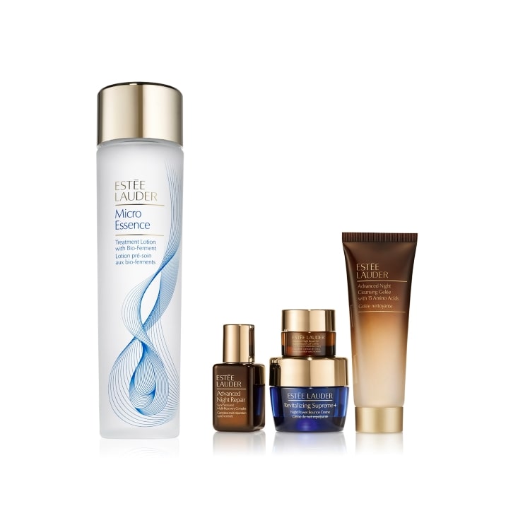 エスティ ローダーを代表する化粧水「マイクロエッセンス ローション BF/フレッシュ SF」の現品に、人気のスキンケア製品のスペシャル サイズをセットにした限定コフレ。