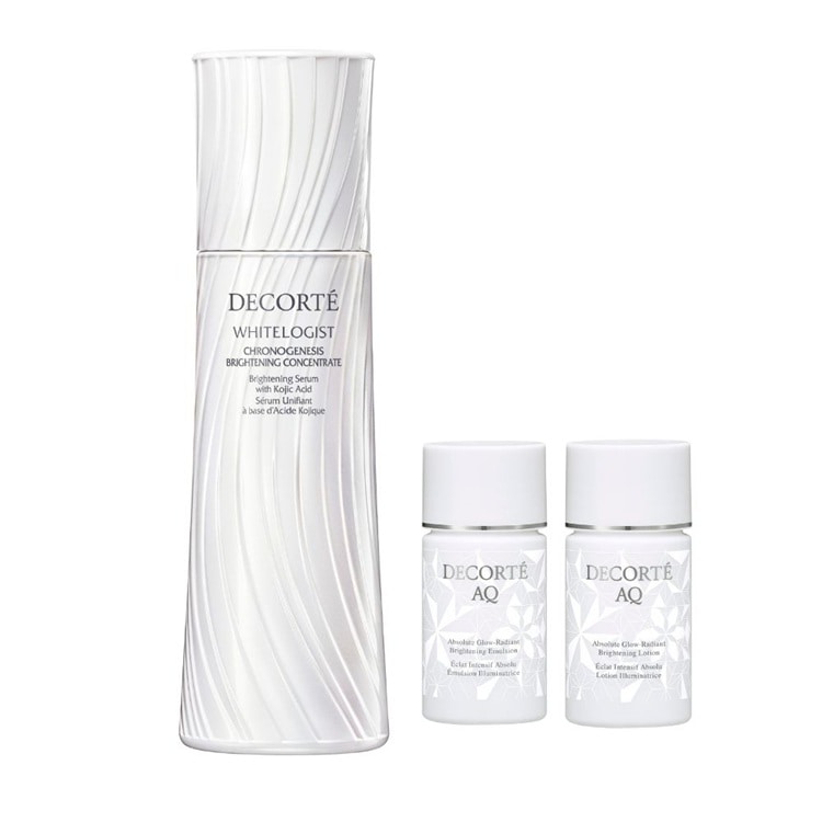 ホワイトロジスト美容液をお買い上げいただいた方に、AQ美白乳液・化粧水ミニボトルを差し上げます。