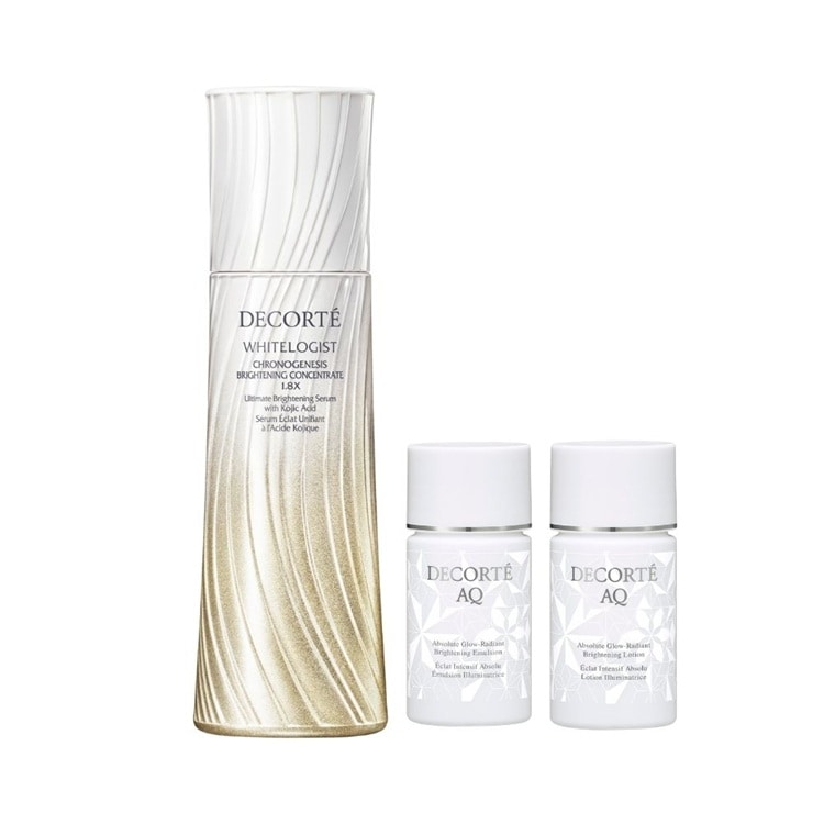 ホワイトロジスト美容液をお買い上げいただいた方に、AQ美白乳液・化粧水ミニボトルを差し上げます。