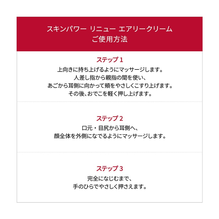 肌を全方位から見出した、スキンパワーシリーズのリニューアル。ピテラTM*1、クマル酸*2、シャクヤクエキス*3を配合し、上頬へ網羅的にアプローチ。ふっくらとしたハリのある肌へと導きます。2つのテクスチャーからお選びいただけます。