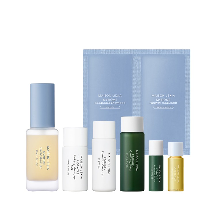●シャンプー・ヘアトリートメント ペアパウチ 1包:ヤチヤナギ乳酸菌培養液*2を贅沢に使用した[マイバイオーム]から、スカルプケアに特化したシャンプーと、ツヤとコシのある美髪へ導くヘアトリートメントを。